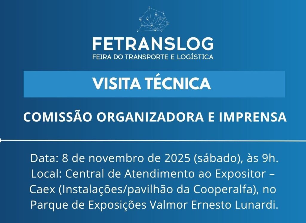 A visita técnica terá a participação de membros da Comissão Central Organizadora da Fetranslog 2025 e profissionais da imprensa. Está marcada para iniciar às 9h deste sábado, 8 de novembro, na Central de Atendimento ao Expositor (Caex), localizada no pavilhão da Cooperalfa, no parque, juntamente com café da manhã.